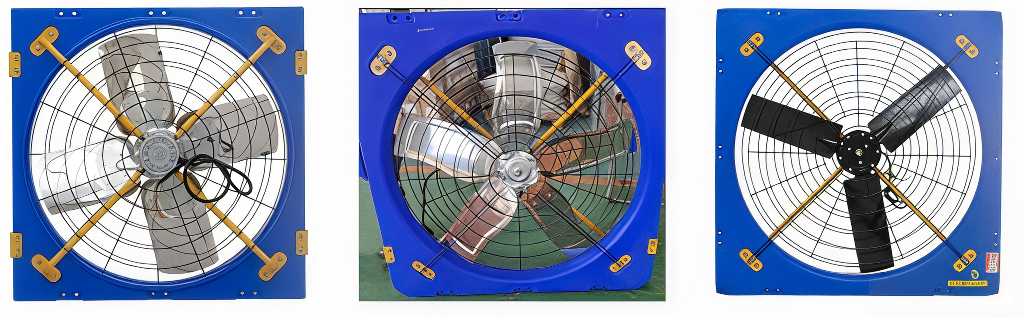Основные отличия: Вентиляторы используют 3 лопасти увеличенного диаметра из стекловолокна, что отличает их от 6-лопастных моделей из оцинкованной стали. Производительность варьируется в зависимости от мощности двигателя и скорости вращения.